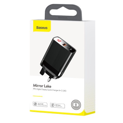 Baseus Mirror Lake PPS Digital Display quick Charger A+C UK Black
